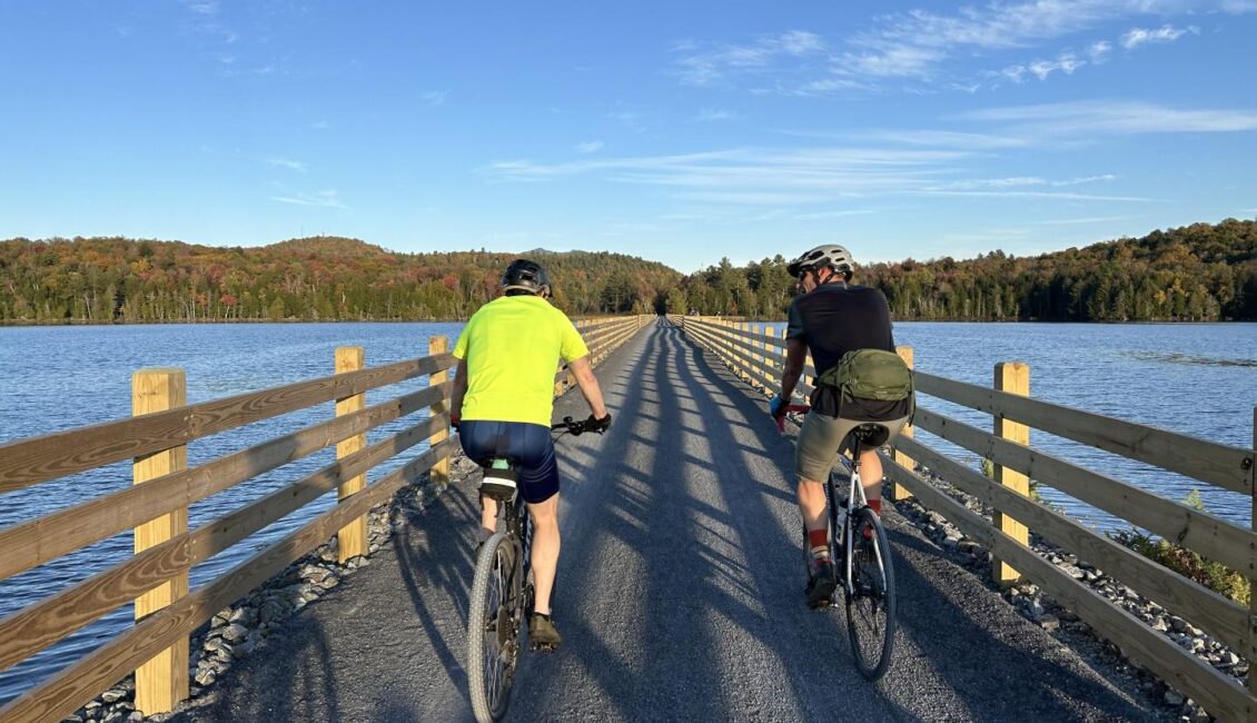 9:30AM-Noon: 22-mile group ride along the Adirondack Rail Trail The rail trail has slight inclines and declines. It is mostly crushed limestone and about 6 miles is paved.