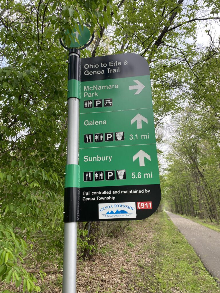 8:30-11:30AM – 19-mile Group Ride The ride will cover a small section of the Ohio to Erie Trail that runs 293 miles from Cleveland to Cincinnati. We’ll start in Westerville and ride to the turnaround point in Sunbury passing through Galena. We’ll take a break in Sunbury at a local coffee shop. It’s an out-and-back ride on paved trail that crosses numerous roads, plus some short road sections. The ride is mostly flat with two brief climbs.